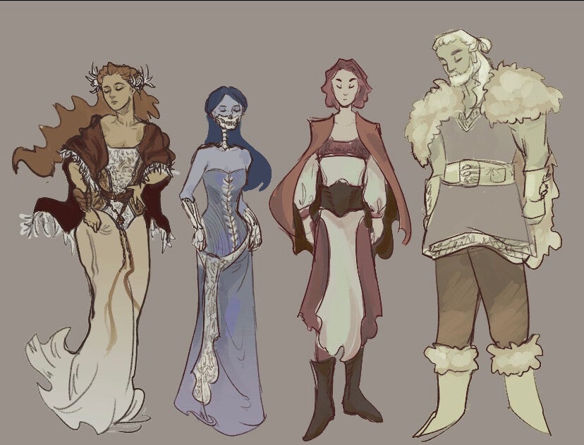 When creating the designs for the four gods, I wanted to make them look distinct from one another while showcasing their characters as much as possible. This made me focus on their silhouettes and colours; Heimdall is built sturdy as he is the front line of any battle, Loki would have a slimmer body as he is not known for fighting but being a trickster. This later developed into smaller details that correlate to God’s specific lore.